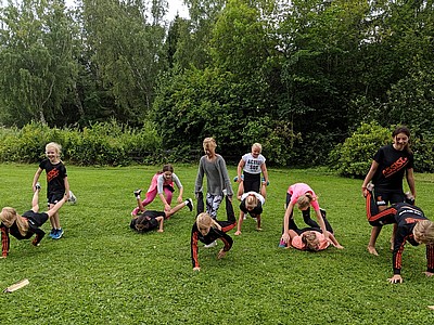 Förutom lite träning, så blev det bad, åka banan, ta hand om alla mini-grodor, femkamp och ännu mera bad.