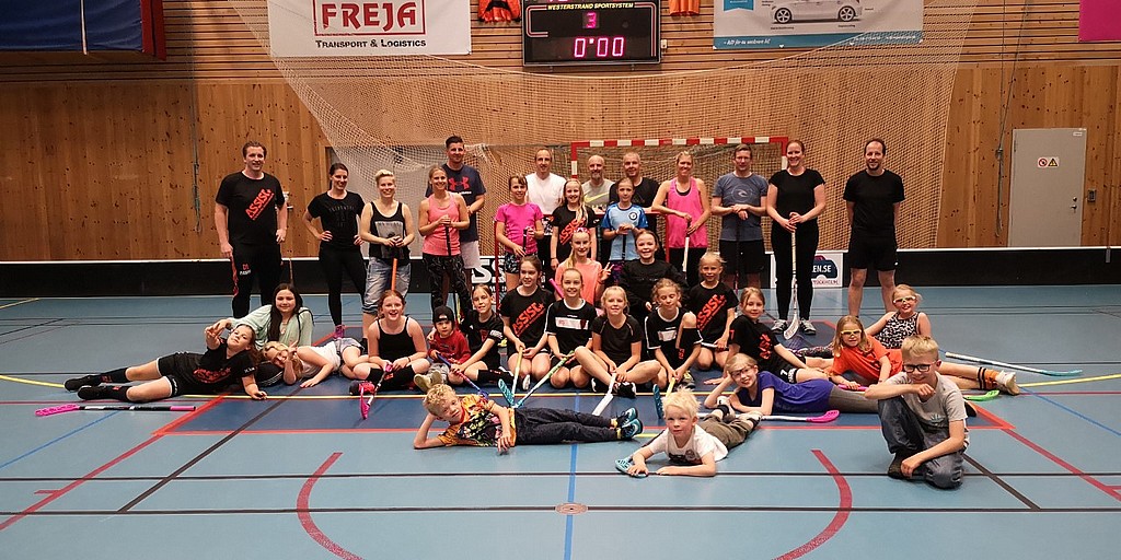 tjejerna värmde upp tillsammans med många av sina syskon på innebandyplanen.
